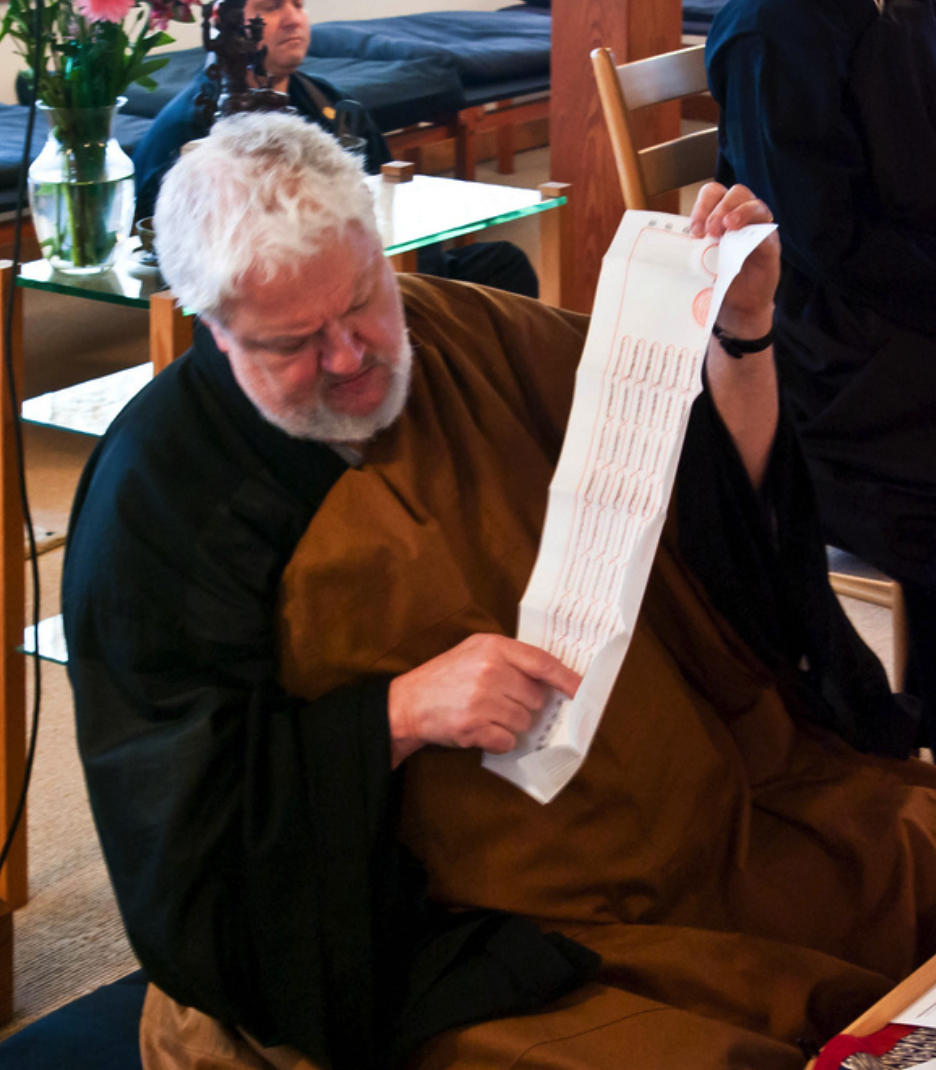 Below is a portion of a much broader article by the Abbot of The Silent Thunder Order, Taiun Michael Elliston-roshi entitled: “Words from Matsuoka Roshi.” I commend the entire article as insight into teacher-student-teacher awareness (Sensei is pictured on the left pointing to our Bloodline of Ancestors).